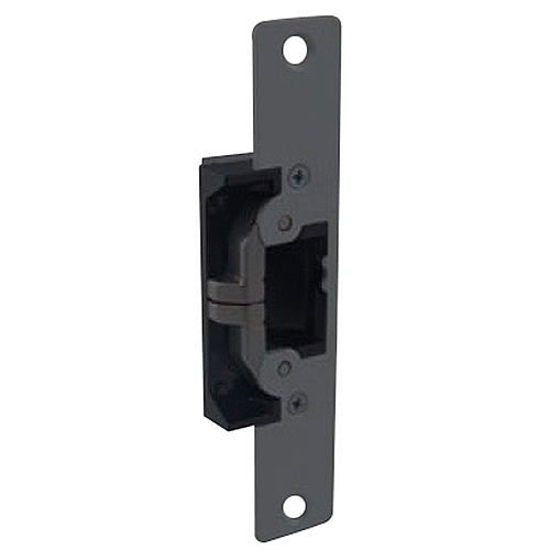 This versatile electric strike boasts a non-handed design and features ultra-compact dimensions with adjustable stainless steel keepers capable of withstanding over 1,500 lbs [680.4 kg] of holding force in a fail-secure mode. It activates electrically under a door preload of up to 25 lbs. The single solenoid operates on 12/16/24 VDC power, enabling remote electrical control. Ideal for narrow stile aluminum doors with deadlatches or cylindrical locksets, it provides electrical unlocking that releases the keeper, allowing the latchbolt to be disengaged so the door can be opened without manual latch operation.