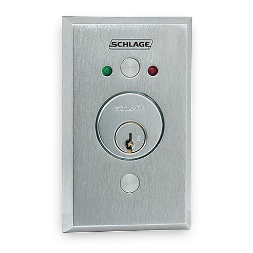 Schlage 650 Series keyswitches feature an advanced magnetic spring mechanism enabling quick configuration of both clockwise and counterclockwise key turn directions, as well as options for momentary or maintained actions. They are available in single gang and narrow stile versions, offering a variety of options, including a heavy-duty plate, weather-resistant cover (for single gang size only), dual LED indicators (green/red), anti-tamper switch, and Schlage Everest cylinder. In addition to the standard satin stainless steel (630) finish, there are five more architectural finishes available to meet diverse design preferences.