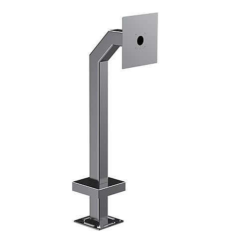 An elegant architectural pedestal designed for car-height installation of the Farpointe P-900 HA, ideal for automated gate access, parking lot management, and perimeter security applications. This product features a faceplate with a pre-drilled hole pattern for the Farpointe P-900 HA, a robust base plate, and a sliding cover plate to conceal the mounting bolts for enhanced stability. Crafted from durable .120″ wall tubing, it is built to endure both vandalism and harsh weather conditions.