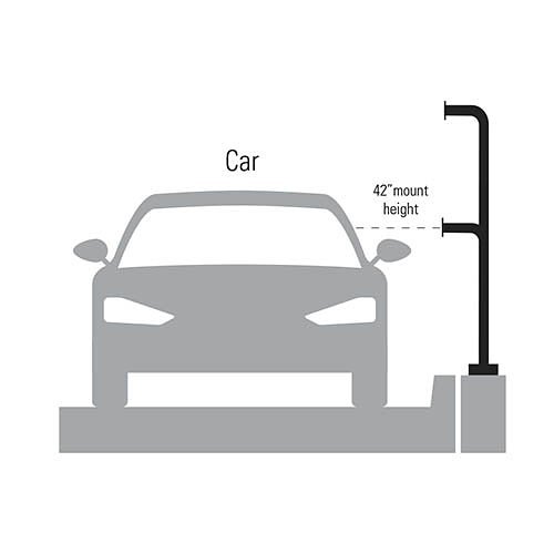 The 72″ and 42″ Black Steel Dual Height Gooseneck Pedestal is designed for versatile applications, featuring dual extensions at heights of 72 inches and 42 inches. This robust pedestal caters to ADA-compliant requirements and is suitable for vehicles including cars, SUVs, trucks, and buses. Constructed with a durable, heavy-duty 8″ x 8″ base plate and a 4″ x 4″ universal face plate, it offers conduit access through the base plate for seamless electrical wiring integration.
