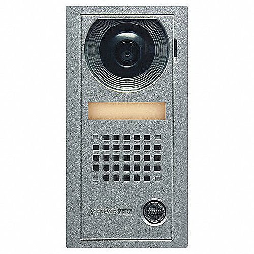 The AX-DV is a rugged, vandal-resistant door station designed for the AX open voice color video entry series. This surface-mounted unit attaches directly to wall surfaces and connects to the AX Central Control Unit via CAT-5e cabling. Its faceplate is crafted from durable cast aluminum, and the camera is safeguarded by a clear polycarbonate lens cover. The AX-DV is equipped with a high-quality color CCD camera, integrated speaker and microphone for seamless communication, an illuminated call directory, and a white illumination LED for enhanced visibility in low-light environments.