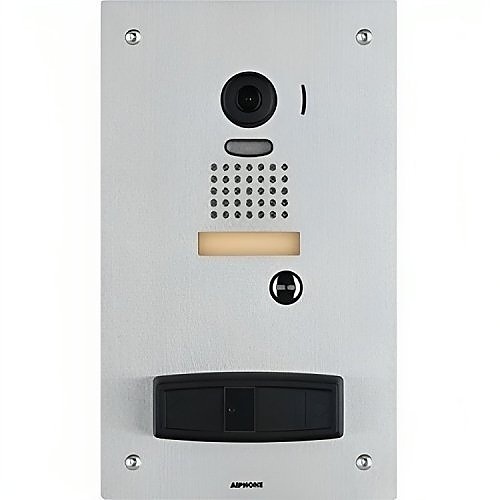 The JP-DVF-PR is a vandal-resistant door station designed for the JP Series, featuring a built-in proximity card reader. This card reader supports Aiphone 40-bit credentials and is also compatible with select HID, AWID, and Pyramid access control credentials.