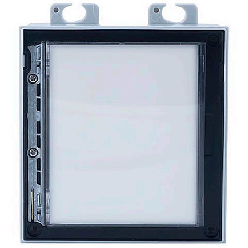 The Infopanel module is designed to integrate essential information, such as building numbers, business hours, and related details, into your intercom system installation. The Infopanel’s backlighting is managed through software control, ensuring optimal visibility and customization.