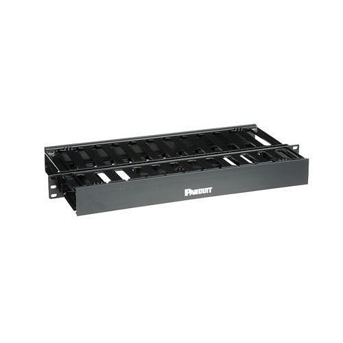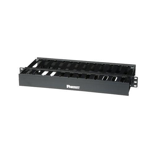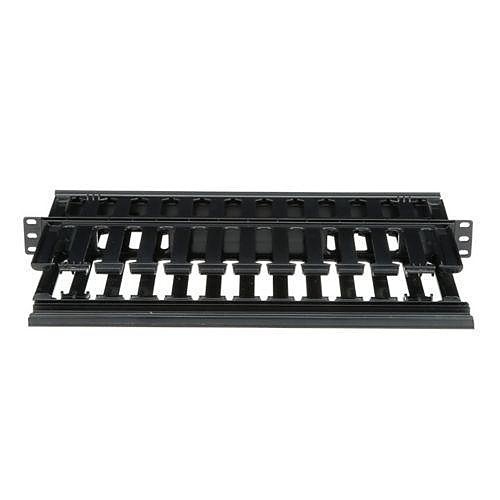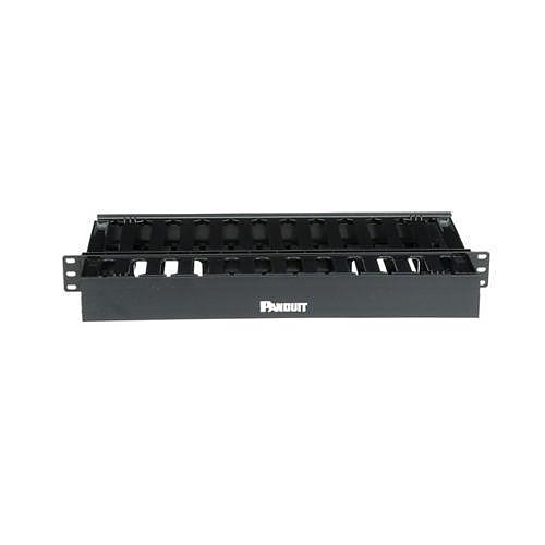 1RU PatchLinkâ„¢ Horizontal Cable Management System featuring a dual-hinged cover for enhanced accessibility, designed for both front and rear cable organization.