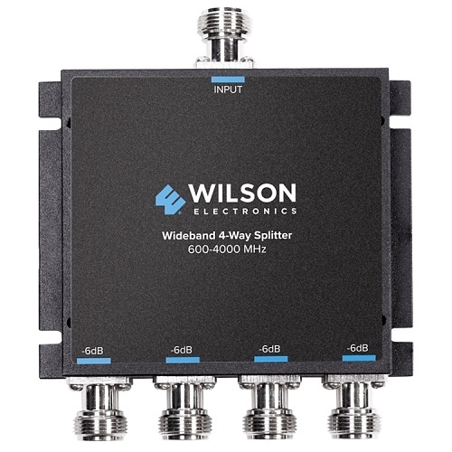 This state-of-the-art 4-way RF splitter, model number 859117, is engineered for seamless integration with industry-standard cellular repeaters to efficiently divide signals into four equal outputs. It supports the connection of four antennas via a single cable, ensuring uniform signal strength across all connections. Essential for incorporating C-Band antennas (models 311245, 311243, 311242) and repeaters into existing communication systems, this splitter is optimized for use with WilsonPro 1337 C-Band equipment. It functions effectively across a wide frequency range from 600 to 4,000 MHz, making it suitable for C-Band, T-Mobile Band 71, and Pro 710i applications. Rated IP65 for both indoor and outdoor installations, this high-performance device boasts low insertion loss and minimal VSWR (Voltage Standing Wave Ratio). Equipped with N-Female connectors, it serves as a direct replacement for the previous 4-way splitter model 859981.