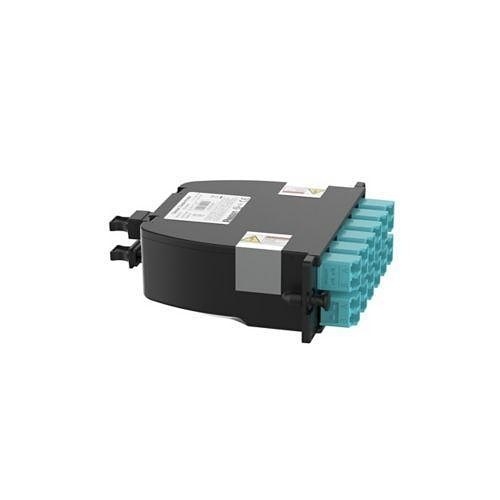 The OptiComĀ® Fiber Cassette is designed for OM3 applications, featuring 2 MPO to 12 duplex LC connections, and accommodates a total of 24 fibers. It ensures optimized insertion loss and utilizes universal polarity for maximum performance.