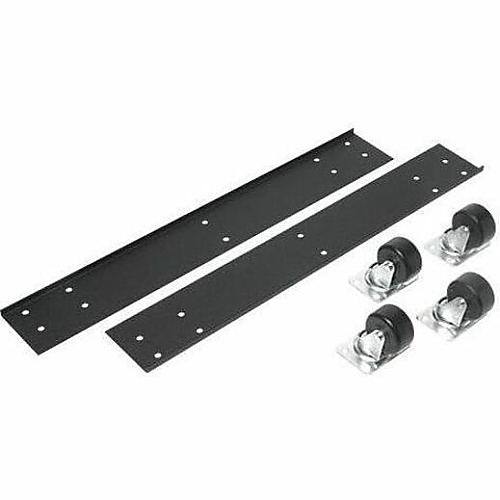 This caster kit includes four non-locking casters with a 2 5/8″ diameter, paired with two easy-to-install mounting and support brackets. Designed for compatibility with 30″ deep cabinets in the 200/500 Series, these heavy-duty 14-gauge CRS mounting brackets are 4″ wide, enhancing the cabinet’s structural integrity with front-to-back reinforcement when installed beneath the bottom panel. The brackets, at a thickness of .075″, feature a 1/2″ downward flange along the inner edge for additional stability. The zinc-plated swivel casters, with an overall height of 3.75″, are equipped with hard rubber tread wheels, ensuring smooth mobility. This kit supports a load capacity of up to 1000 lbs, with the brackets and casters attaching directly to the cabinets using the included hardware. Once installed, the overall height of the cabinet increases by 1.75″. The brackets boast a sleek black finish, providing both durability and aesthetic appeal to your cabinet system.