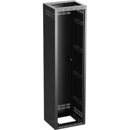 For ease of installation, the cabinet offers an expansive 6RU opening at the top and bottom, which can remain open for cable management and ventilation, or closed with standard vent or solid panels. The rear doors, integrated with quick-release spring hinges, can rotate 180° for flexible right or left-hand opening. An optional front door can be installed and is keyed differently from the rear door for enhanced security measures.