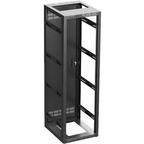 For fundamental ganging rack solutions, the Atlas 540-25 offers a contemporary design. This rack is 22-5/16″ wide, 25-1/2″ deep, and accommodates 40 vertical panel units. The 500 Series Cabinets are crafted from welded 16-gauge cold-rolled steel (CRS) and are ready for immediate deployment. Rear doors feature quick-release spring hinges for 180° rotation, supporting both right and left-hand opening. Refer to the accompanying chart for optional front door model numbers. If a front door is ordered, it will have a different key for enhanced security. Both the cabinet frame and rear door are vented, facilitating optimal air circulation and cooling.
