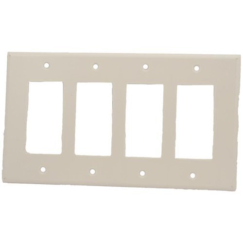 Leviton 80612-W 4-Gang Decora/GFCI Device Wallplate, Midway Size, Thermoset, White