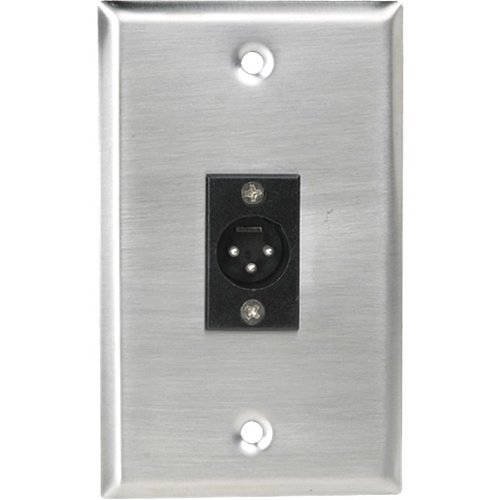 Single Gang Stainless Steel Plate featuring a Male 3-pin XLR Connector offers a professional aesthetic with simple and cost-effective installation. These industry-standard wall plates include mounting holes compatible with standard box mount centers [3 9/32″ (83mm)] and come with necessary plate mounting hardware.
