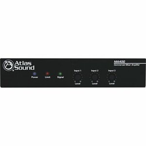 Compact and engineered for reliability, the Atlas Sound MA40G amplifier is an excellent solution for distributed business paging, background music (BGM) systems, and small to medium speech privacy systems. Delivering 40W into a 70.7V/100V line, this amplifier includes a balanced mic/line input with phantom power and variable mute sensitivity control, alongside two unbalanced, summing line-level inputs. Key features include Removable Level Controls with a security cover to set and forget, contact closure mute terminals, and a versatile global power supply (100VAC-240VAC). The MA series amplifiers are part of Atlas Sound’s newly developed line, designed to provide essential features that professional installation technicians need to meet or exceed client expectations.