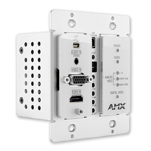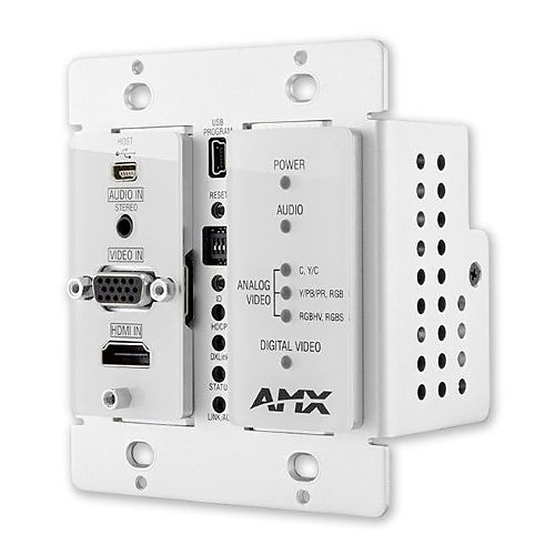 Explore the efficiency and versatility of the AMX FG1010-325-WHFX Multi-Format Wall Plate Transmitter, a cutting-edge solution for audiovisual installations. This device enhances system configurations by transmitting audio, video, and power through a single twisted pair cable. It supports a diverse range of signals, including RGBHV, Component, S-Video, Composite, HDMI/HDCP, DisplayPort++, and DVI. With the ability to extend HDMI signals up to 100 meters, it significantly exceeds the limitations of conventional HDMI cables. The transmitter’s standard wallplate design ensures easy installation and is compatible with Enova DGX or DVX systems. Perfect for both legacy and contemporary technologies, this transmitter guarantees seamless integration and optimized performance in any setup. Upgrade your system now for enhanced connectivity and extended signal reach!