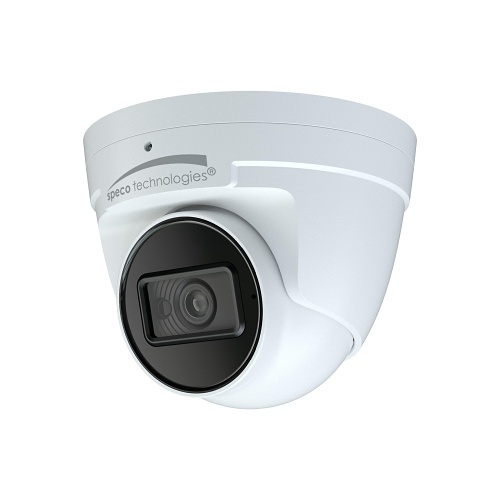 The Speco O4FT2W is a cutting-edge 4MP Flexible Intensifier AI IP Turret Camera, complete with a junction box and a 2.8mm fixed lens, available in white. It is compliant with NDAA standards.