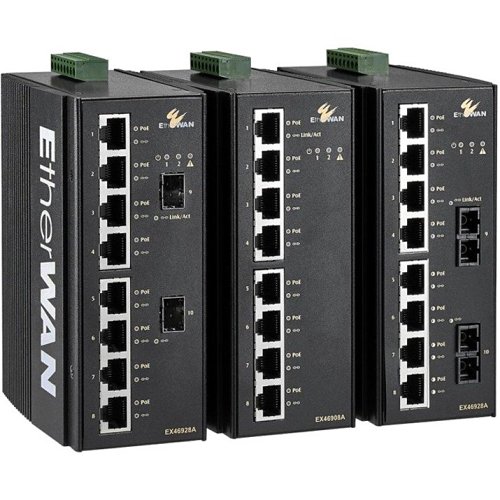 Introducing the EX46900A Series, a compact, hardened unmanaged PoE Gigabit switch designed for straightforward deployment in rugged environments. This industrial-grade switch features ten Gigabit Ethernet ports, including a mix of eight PoE-enabled ports (compliant with IEEE 802.3at) and two Gigabit fiber ports for extended connectivity. Despite being unmanaged, the EX46900A Series offers extensive features, including 9.6K Jumbo Frame support, full wire-speed Gigabit throughput, and eco-friendly IEEE 802.3az Energy Efficient Ethernet (EEE) compliance, making it a robust and energy-efficient network solution.