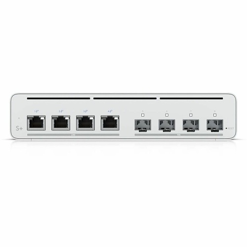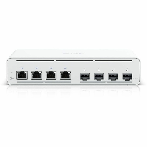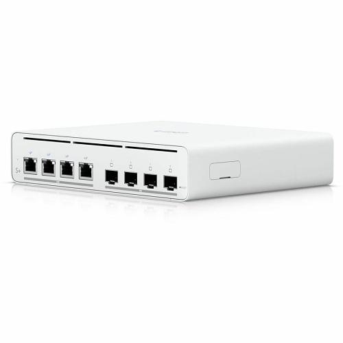 | Features | (1) Power TransPort input for DC redundancy, (4) 10G SFP ports, (4) 2.5 GbE RJ45 ports with 27V passive PoE output, 160W (27V) total PoE availability*, 20W/port (2-pair) / 40W/port (4-pair), Desk, wall, 1U rack, and outdoor mounting, Port isolation, speed limiting, and DHCP snooping functionality, Standalone management through local web interface and UISP Application integration, When enclosed in the UISP Box Plus (sold separately)., When powered with the included AC/DC adapter. |