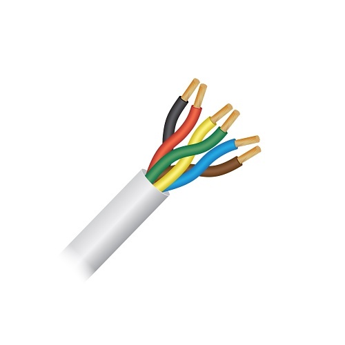 This cable features three pairs of 18 AWG stranded bare copper conductors with color-coded insulation, enclosed in an overall white jacket, ideal for data communications and security systems applications.
